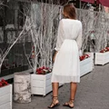 BGTEEVER Elegant Stand Collar Ruffles Women Dress Full Sleeve Elastic Waist Female Chiffon Dress 2020 Spring Midi Vestidos femme