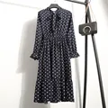 2020 Autumn Vestidos Chiffon Women Dress Ladies Long Sleeve Polka Dot Vintage Shirt Dress Casual Yellow Floral Winter Midi Dress