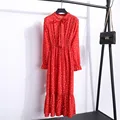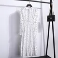 2020 Women Autumn Long Sleeve Dress Fashion Office Ladies Casual Loose Vintage Ruffles V Collar Polka Dot Print Dresses Big Size