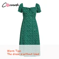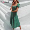 Special Offer Conmoto Summer Vintage Party Dress Square Collar Ruffle Elegant Sexy Dress Beach Female Green Flora with FREE Shipping Worldwide!