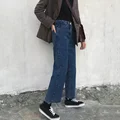 Jeans Women Leisure Loose High Waist Retro Wide Leg Womens Jean Korean Style All-match Simple Full-length Trendy Chic Zipper Fly