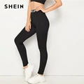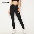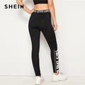 Cheap Offer SHEIN Black Slogan Print Leggings Women Bottoms 2019 Autumn Elastic Waist Active Wear Leisure Skinn with FREE Worldwide Shipping!