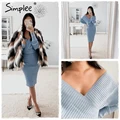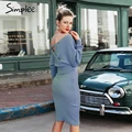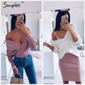 Simplee Elegant women knitted dress Off shoulder long sleeve female autumn winter soft sweater dress Chic ladies office vestidos