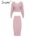 Limited Offer Simplee Sexy v-neck women knitted skirt suits Autumn winter batwing sleeve 2 pieces Elegant party f with Free Worldwide Shipping!