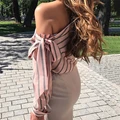 Special Price Summer Women New Striped Loose Blouse Fashion Lady Off Shoulder Lace Up Shirts Female Elegant Tops with FREE Shipping Worldwide!