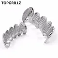 TOPGRILLZ Hip Hop Grills Gold Silver Color Iced Out Micro Pave Full CZ Teeth Grillz Bottom Grills Charm For Men Women Jewelry