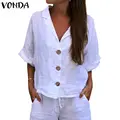 Discount Price VOND Tunic Women Tops Vintage 3/4 Sleeve Bohemian Summer Beach Shirts 2020 Casual Loose Blouse Sexy with Free Shipping Worldwide!