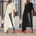 VONDA Summer Dress Women Sexy Split Hem Maxi Dress Long Party Blouse 2020 Female Office Ladies Sundress Casual Vestido Plus Size