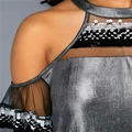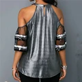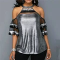 Discount Offer Women Mesh Sequins Blouse Tops New Lady Hollow Out Patchwork Fashion Shirts Off Shoulder Short Slee with Free Worldwide Shipping!