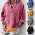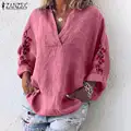 Best Offer Women V Neck Long Sleeve Blouse Floral Embroidery Tops ZANZEA Autumn Cotton Linen Shirt Femme Robe with Free Worldwide Shipping!