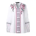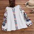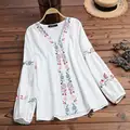 ZANZEA Spring Long Sleeve Ruffles Tops Women Vintage Embroidery Blouse Casual O Neck Cotton Linen Blusas Femininas Shirt Mujer