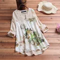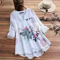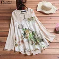 2020 Women's Summer Blouse ZANZEA Vintage Asymmetrical Tops Casual Long Sleeve Printed Shirts Female Fake Two pieces Blusa Tunic