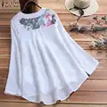 2020 ZANZEA Cotton Linen Tops Women Blouse Elegant V Neck Long Sleeve Shirt Casual Autumn Lace Shirts Vintage Embroidery Blusas