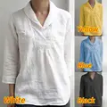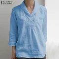 Special Price ZANZEA Elegant Women Lapel Neck Cotton Linen Shirt Summer 3/4 Sleeve Tunic Tops Casual Ladies V Nec with Free Shipping Worldwide!