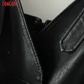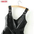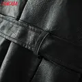 Tangada women black faux leather suit pants high waist pants sashes pockets 2019 office ladies pu leather trousers 6A05