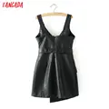 Women Sleeveless PU Faux Leather Dresses Autumn Winter 2019 Adjust Strap Zipper female Pink Short Dress With Slash AM05