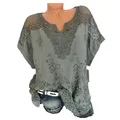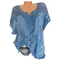 Cheap Price 2019 Summer Short Sleeve Womens Blouses And Tops Loose White Lace Patchwork Shirt Plus Size 4xl 5xl with Free Shipping Worldwide!