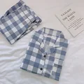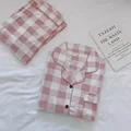 2019 Korean Women Pajamas Sets with Pants Cotton Pijama Plaid Spring Summer Sleepwear Pyjama Cute Night Wear Nightsuits