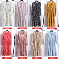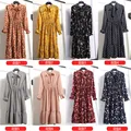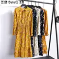 Beautiful Fashion Spring Autumn Women Long Sleeve Dress Retro Collar Casual Slim Dresses Floral Printing Chiffon Sexy