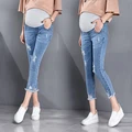 0225# 9/10 Length Ripped Hole Stretch Denim Maternity Jeans Summer Fashion Belly Pencil Trousers for Pregnant Women Pregnancy