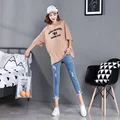 Elastic Waist Hole Stretch Denim Maternity Belly Jeans Autumn Spring Pants Clothes for Pregnant Women Pregnancy Pencil Trousers