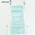 Special Offer Articat Spaghetti Strap Mini Satin Dress Women Sexy Backless Cross Bandage Bodycon Party Dress Plea with FREE Worldwide Shipping!