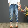 Plus Size 2020 Summer Jeans Harem Pants Women Casual Loose Vintage Embroidery Denim Pants Capris High Waist Jeans Vaqueros