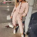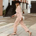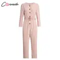 Cheap Offer Conmoto Autumn Winter 2019 Corduroy Light Pink Jumpsuits Romper Women High Fashion Button Jumpsuit with FREE Worldwide Shipping!
