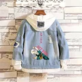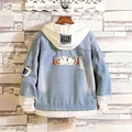 Anime Attack on Titan Unisex Streetwear Long Hooded Jeans Jacket Guilty Crown Death Note Harajuku Denim Patchwork Hoodies Coat
