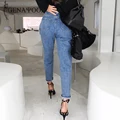 Genayooa Korean Women's Jeans Streetwear Ladies Slouchy Jeans Denim High Waist Cotton Vintage Pencil Pants 2020 Summer Mom Jeans
