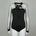 Sexy Women Transparent Patchwork Mesh Sheer Long Sleeve Elegant Jumpsuit Bodysuits Women Long Sleeve Rompers Bodysuit Overalls