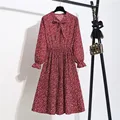 High elastic waist Dress Women vintage Autumn Winter Dresses Chiffon Midi Casual Floral Long Sleeve Office Polka Ladies Vestidos