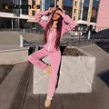 Special Offer Rompers Sexy Jumpsuit Women Tracksuit Spring Fall Hooded Cat Ear Pink Black Zipper Pocket Sweatshir with FREE Shipping Worldwide!