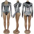 Limited Price Sexy Holographic Long Sleeve Hooded Bodysuit Women Cut Out One Piece Skinny Rompers 2019 Streetwear with Free Worldwide Shipping!