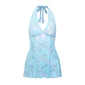 Discount Offer Shestyle Lace Mesh Sexy Halter Camis Scoop Back Backless Blue Deep V Neck Flare Flower Embroidery S with Free Worldwide Shipping!