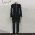Best Offer Simenual Ribbed Zipper Skinny V Neck Rompers Womens Jumpsuit Fashion Bodycon Sexy Hot Long Sleeve S with FREE Shipping Worldwide!