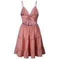 Lossky Summer Short Dress Women Backless Sleeveless Lace-Up Pleated Mini Black Red Strap Dress 2020 beach clothes for women
