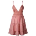 Summer Party Dress Sexy White Pink Deep V Neck Backless Lace Short Dress Women Casual Bandage Spaghetti Strap Sleeveless 2020