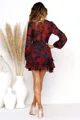 Uguest Women Mini Chiffon Sexy Dress V-neck Short Petal Sleeve Ruffles A-line Sashes Zippers Floral Printed Summer Loose Dress