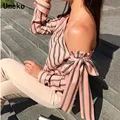 Best Offer Umeko Striped Blouse Women One Shoulder Tops Sexy Long Sleeve Bow Shirts Female Fashion Women's Blo with Free Worldwide Shipping!