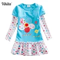 VIKITA Girls Dresses Autumn Children Cotton Casual Dress Toddlers Long Sleeve Cartoon Vestidos Kids Princess Dress For Girl