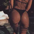 Sexy Swimwear Crystal Shiny Cover Up Women Summer Fishnet Hollow Bikini Cover Up Tops Swimwear Bathing Suit White Black