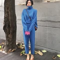 Best Offer 2 Pieces Set Women Winter Autumn Knitted Tracksuit Turtleneck Sweater Knit Pants Women Loose Clothi with FREE Shipping Worldwide!
