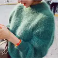2020 Sweater Women Fashion Casual Simple Lantern Sleeve Solid Color Loose Comfort Cashmere Knitting Mohair Fur Pullover USWMIE