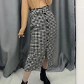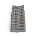 Vintage High Waist Women Plaid Print Skirt Fashion Straight Bottoms Female Front Split Skirts Fashion Elegant Ladies Midi Skirt