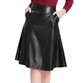 Belle poque skirt womens pu faux leather skirt fashion high waist pleated skirt A Line midi skirt 2020 Ladies Autumn Winter