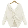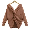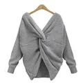 Discount Offer Fashion Womens Winter Sweater Knit Sweater V-neck Long Sleeve Pullovers Back Knitting Solid Sexy Sw with FREE Worldwide Shipping!