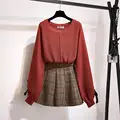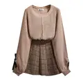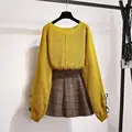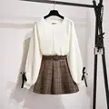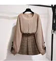 ICHOIX Plaid mini skirt set Korean style women 2 piece set girl student casual Sweet 2 piece outfits femme winter sweater set
