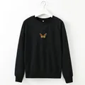 Autumn women crop hoodies sweatshirts Butterfly embroidery white black yellow Tops cropped hoodie