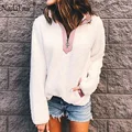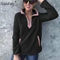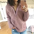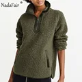 Nadafair autumn winter fleece faux fur plaid hoodies women zipper loose casual sweatshirts female thicken warm soft plush tops